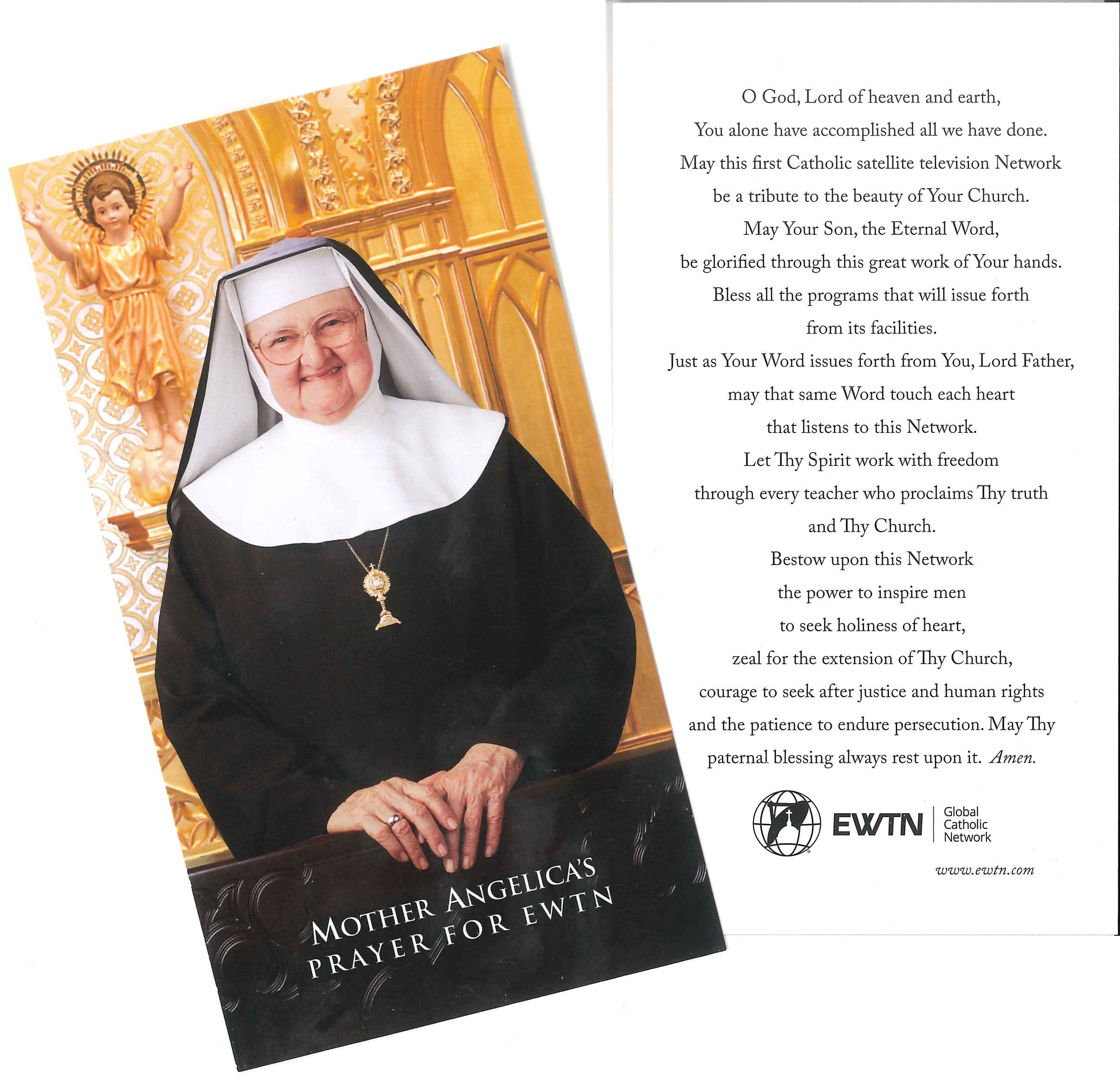 We encourage each Media Missionary to pray Mother Angelica’s Prayer for EWTN every First Friday of the month. It unites us in concerted prayer! This is her Prayer Card: Size 3"x 5 ½“ for order only (prayer also found in the Media Missionary Devotional Guide).
